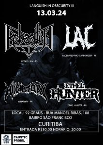 Acontece nesta quarta-feira (13/03), no 92 Graus, uma noite de death metal com as bandas Ethel Hunter, Minatory, Rebaelliun e os cariocas do Lacerated and Carbonized.