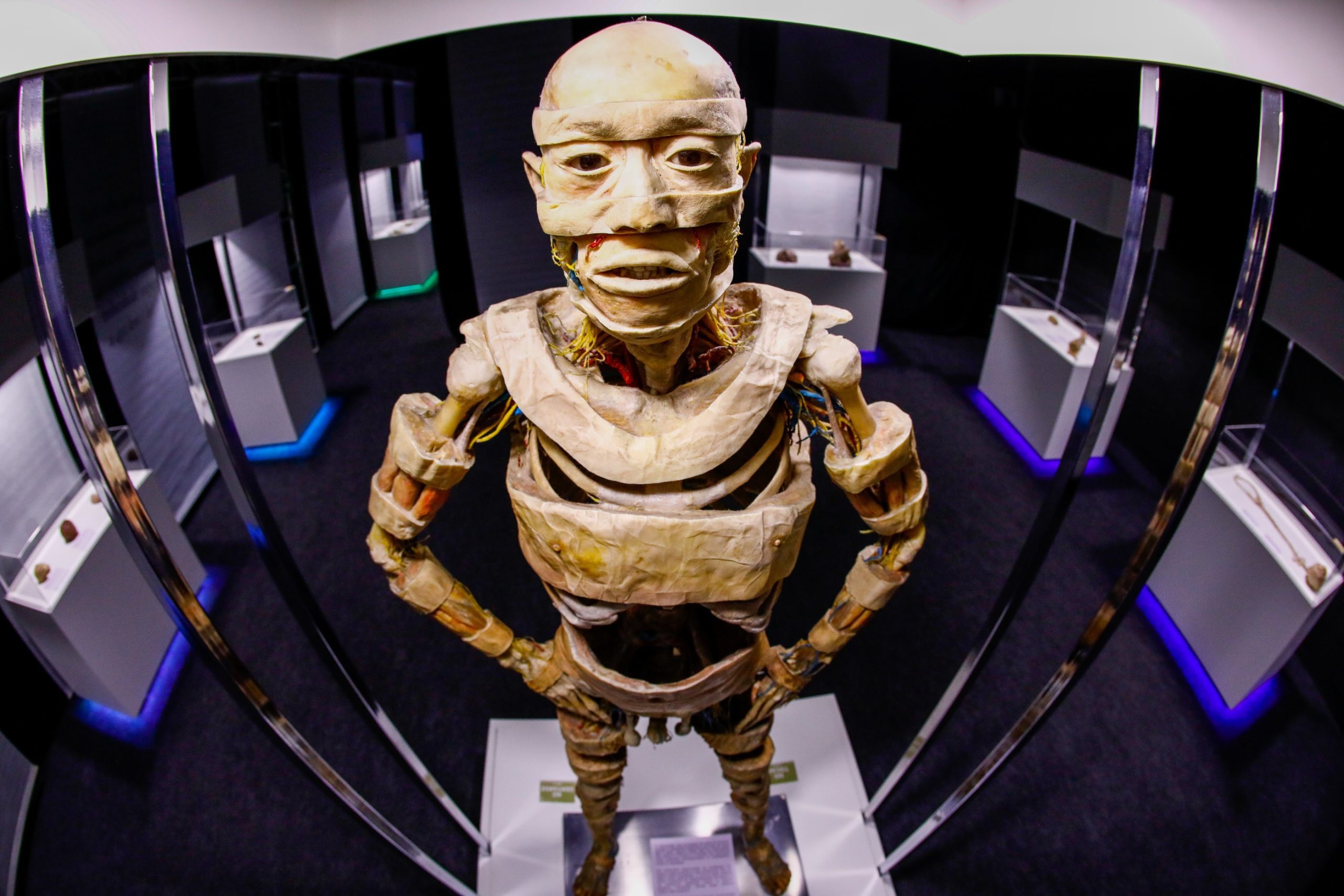 Entre os itens à mostra, quem visitar a exposição poderá conferir o corpo dissecado que aparece em uma cena do filme 007 Cassino Royale (2006), gravada em Praga, na República Tcheca, e que tem como protagonista o ator Daniel Craig.