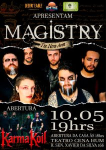 No dia 10 de maio, a banda curitibana de heavy metal sinfônico Magistry realizará um show em comemoração ao lançamento de seu álbum de estreia, The New Aeon, que será lançado em todas as plataformas digitais no dia 5 de março. A apresentação será realizada no Teatro Cena Hum e os ingressos já estão à venda no site da Sympla.