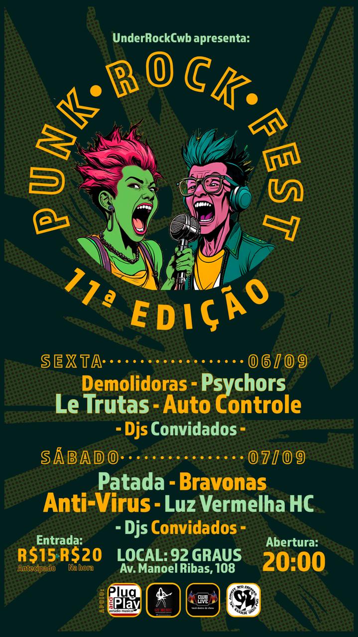 A 11ª edição da tradicional Punk Rock Fest será realizada nos dias 6 (sexta-feira) e 7 (sábado) de setembro no 92 Graus (o templo do underground curitibano, que está completando 33 anos de vida).