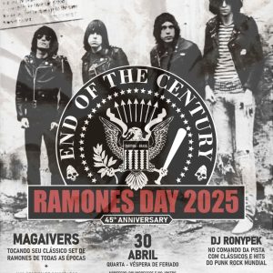 No dia 30 de abril (quarta-feira), o Jokers Pub será palco da 12ª edição do Ramones Day, dedicada aos 45 anos do álbum “End Of The Century” (1980), um dos mais importantes discos da banda estadunidense.